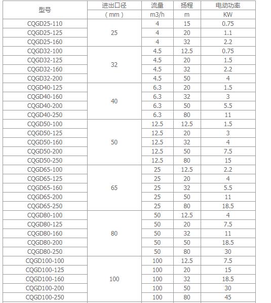 CDG系列高壓輸送多級磁力泵性能參數(shù):