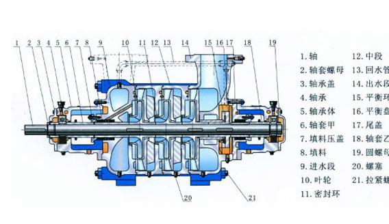 DF型耐腐蝕臥式多級離心泵結(jié)構(gòu)特點: