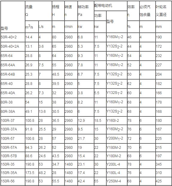R型熱水循環(huán)泵產(chǎn)品性能參數(shù)圖: